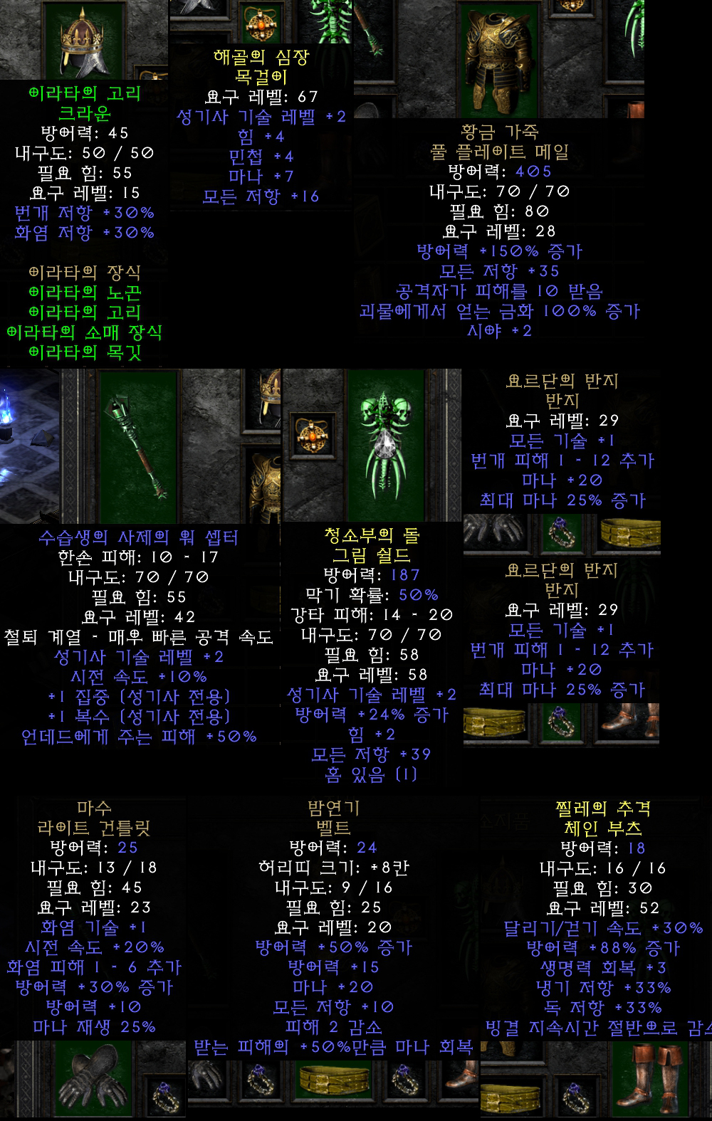 -> +@ 중감,힘,패힛등이 붙으면 좋습니다 역시 그런 방패는 레저에선 구하기