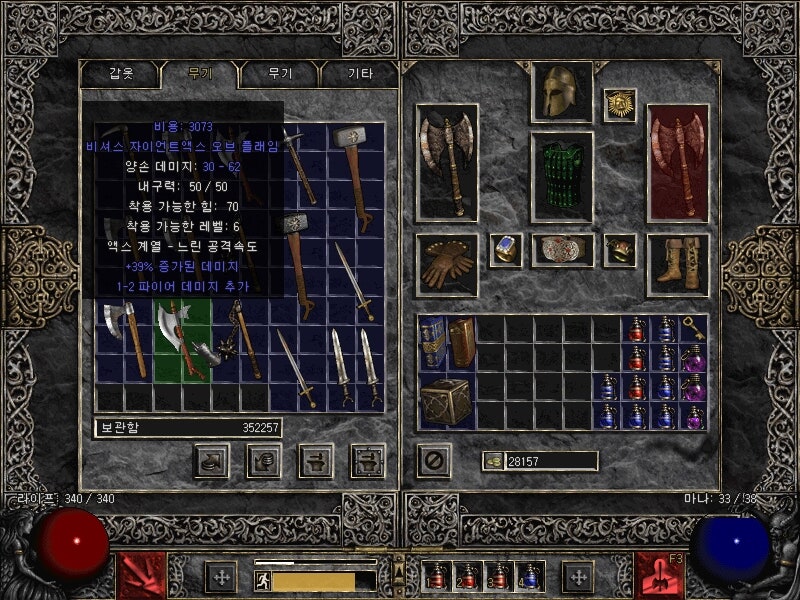 4. 양손 도끼 바바기 때문에 바로 양손무기를 들어 줍니다. 이제 다른 무기는 안쓰고 무조건 양손도끼만으로 진행합니다.
