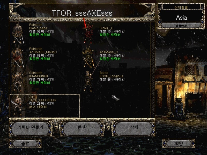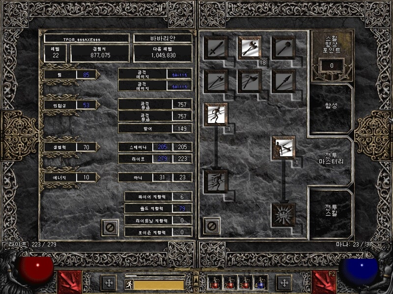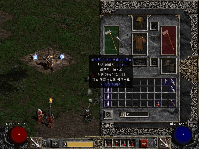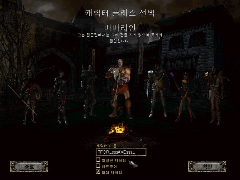 저 캐릭터를 생성할 때 도끼를 가는 저 모습.... 그래서 이번엔 양손도끼 바바를 키워보고자 합니다.